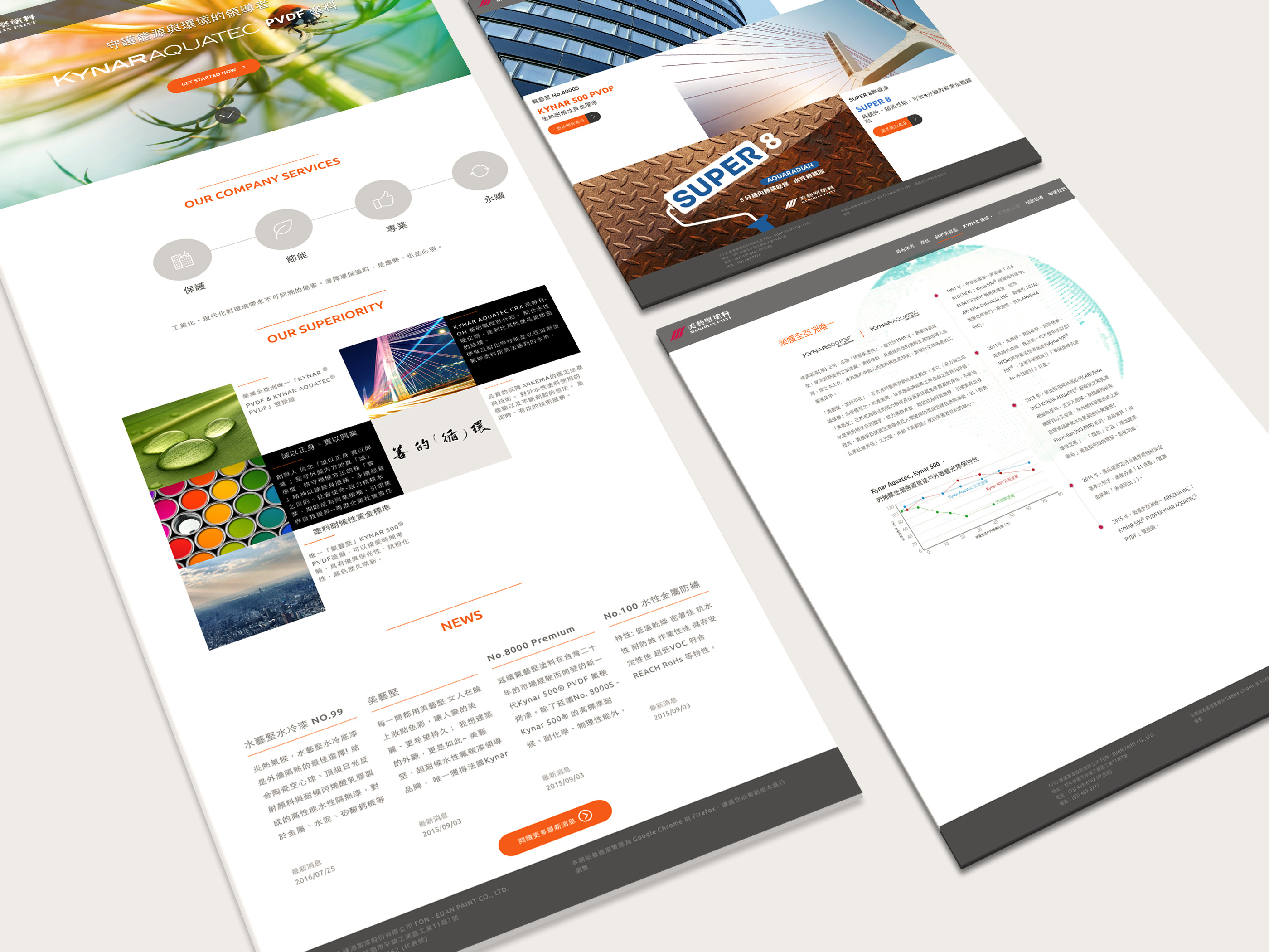 美藝堅塗料創立於1980年,創業的宗旨是成為頂尖的塗料製造廠,將特殊的、具備國際性的塗料生產技術導入台灣,使之本土化,隨後展現於全球各處的工業產品中。我們以各式色彩的圖片來增加網站的豐富性,並引進RWD功能,使本網站能同時適用在不同的裝置上,另外還有好用的後台上稿模式,可隨時新增訊息,操作便利。